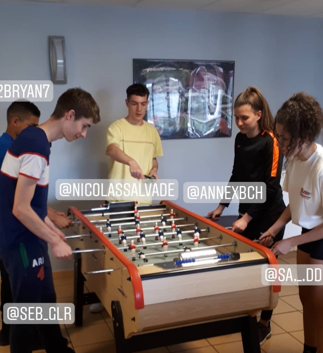 Après quelques repas pas très concluant certains décidèrent de faire un saut au carrefour pour ramener de la nourriture très diététique. Heureusement personne ne rendit son petit déjeuner sur le tartan.Entre les entraînements du matin et de l’après midi beaucoup ont amélioré leur technique au baby-foot tant dis que d’autres essayaient tant bien que mal de travailler. Lundi on échappa de justesse à la pluie mais certains furent de tout de même mouillés. Le groupe de demi-fond est allé s’entraîner dans le bassin. Un entrainement qui finira avec une épaule déboîtée.