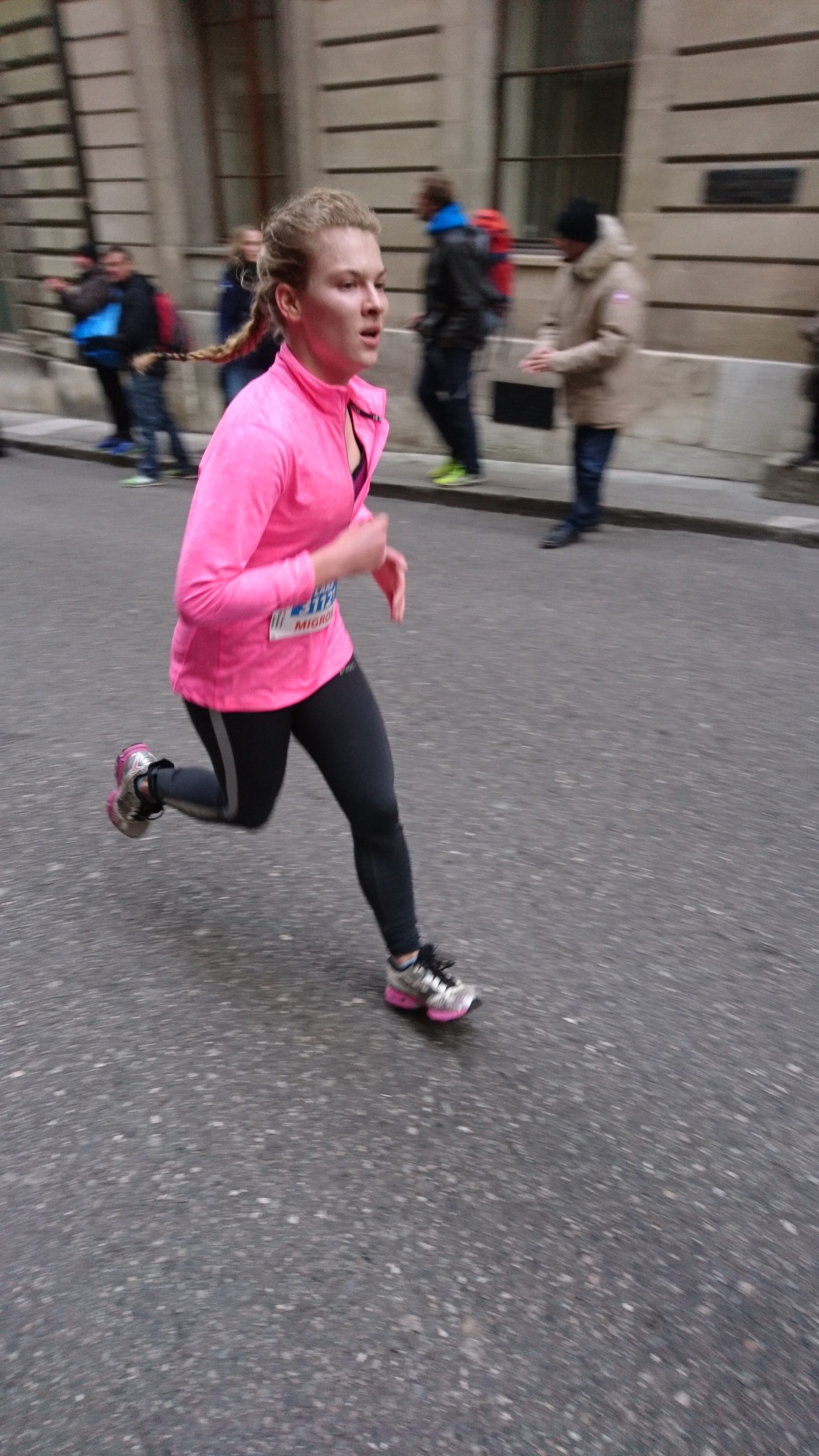 Sur deux tours, Léa Savoy finit 125ème sur 1095 coureuses dans la catégorie Femmes I. Avec pour objectif annoncé de finir en moins de 25 minutes, elle fait bien mieux en terminant en 23’25. Pas mal pour une sprinteuse non ? Dans la même course, mais en catégorie Juniore se trouvait une autre membre du groupe demi-fond : Lara Pajic. Certes elle n’est pas encore stadiste, mais son résultat vaut bien d’être mentionné. En effet, après deux ans de pause athlétique, elle a recommencé cet automne à s’entrainer avec nous et termine à une excellente 5ème place juniore en se permettant de tout simplement remporter la deuxième course par bloc d’allure en 20’08.