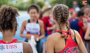 Après l’exploit de Paul, c’est à Salma Dénervaud de partir. Elle démarre dans une course très similaire à la semaine passée, même météo, même concurrente, même stade. Comme la semaine passée, Salma a tenté de crocher Mélissa Girardin à la tête du peloton. Mais l’athlète de la FSG Alle a vraiment une accélération intenable sur les 200 derniers mètres. Salma finira donc à un très bon deuxième rang mais surtout, dans un incroyable chrono de 2’16’’88 ! Un record qu’elle bat de presque deux secondes ! Un temps largement mérité pour cette athlète, qui l’attendait et l’avait dans les jambes depuis un moment. Ah et au passage, ce sont deux athlètes de 1500 mètres à la base 😉