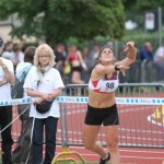 Parlons tout d’abord de celle qui nous a apporté notre seul titre de champion suisse 2013. Sur 400 mètres haies, elle ne partait pas favorite. Pourtant elle a fait sa course de superbe manière, tenu une belle régularité dans une saison difficile. Retrouvant de belles sensations depuis quelque temps, elle termine la course en tête et s’adjuge, 5 ans après son dernier titre national, là aussi sur les haies longues, une superbe victoire et une immense récompense !